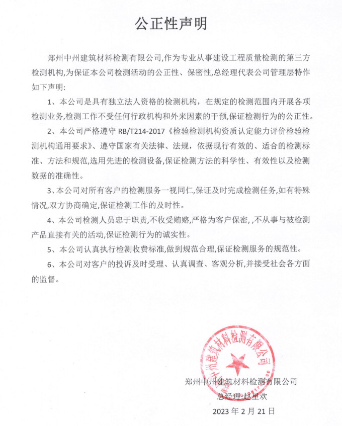 通過河南省質量技術監(jiān)督局計量認證、河南省住房和城鄉(xiāng)建設廳批準,具有獨立法人資格的第三方檢測機構。